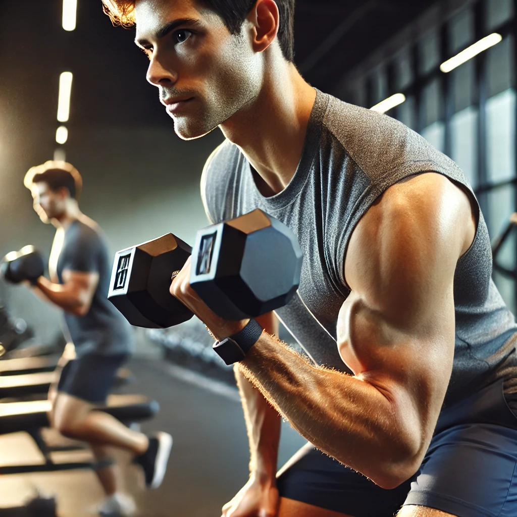 - 덤벨을 양손에 들고 팔꿈치를 몸 옆에 고정한다.